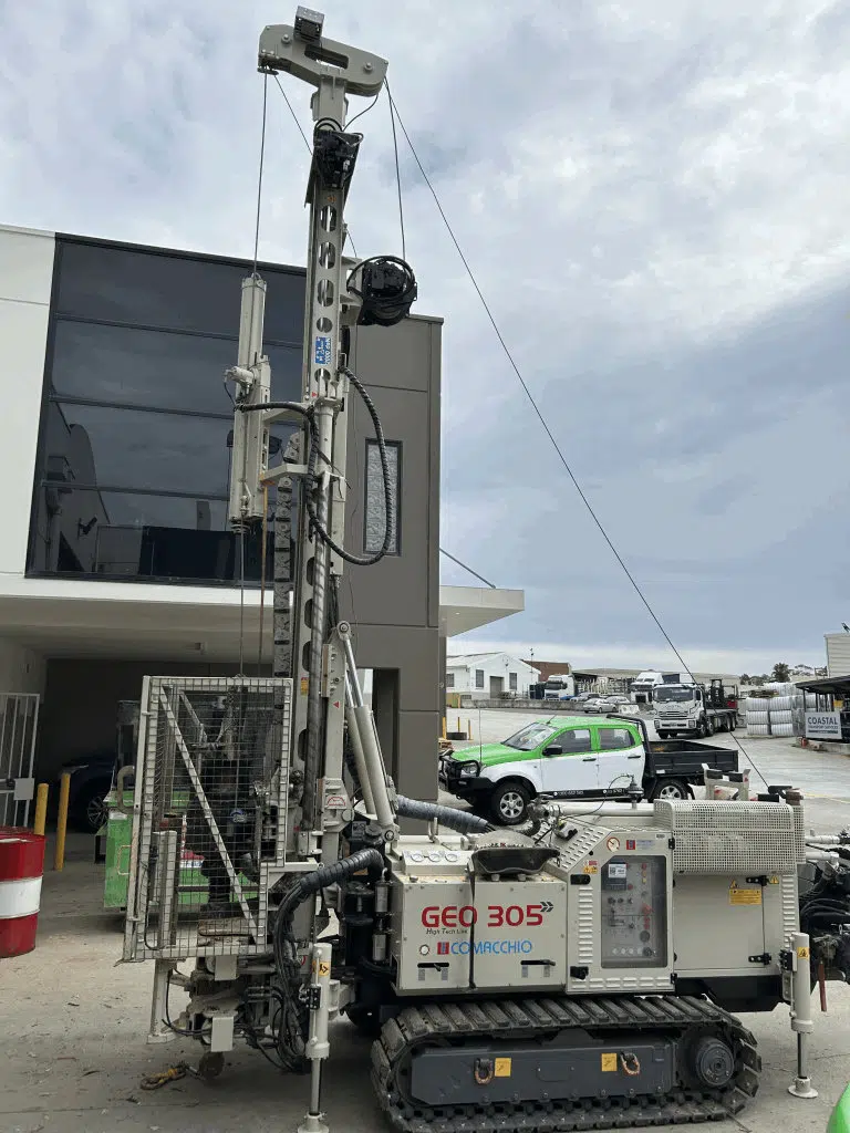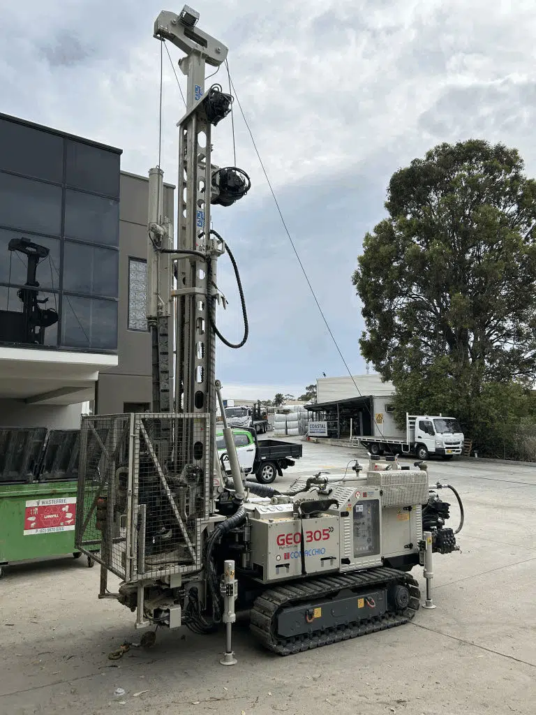 The Comacchio GEO 305 is part of the GEO line of drill rigs that are designed as multipurpose units, able to meet the different requirements and needs related to geotechnical investigation projects. The range of uses of these machines includes destructive and non‐destructive rotary core drilling, the collection of disturbed and undisturbed samples, in situ testing (SPT), installation of piezometers, inclinometers and other geotechnical instrumentation. In addition to geotechnical investigations in the strict sense, the drilling rigs of the GEO line successfully operate in a constantly expanding sector such as environmental monitoring. Finally, the GEO line includes powerful mid‐range machines, which due to their high pullback capacity and torque performance can extend their range of use to include deep borehole water well and geothermal drilling.