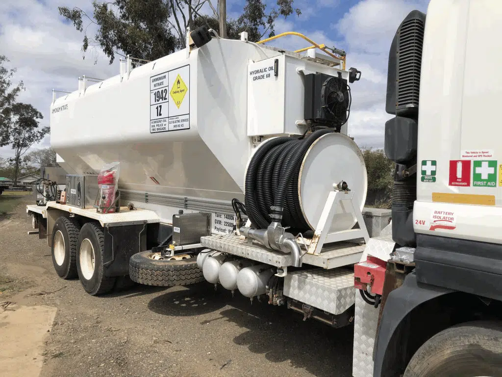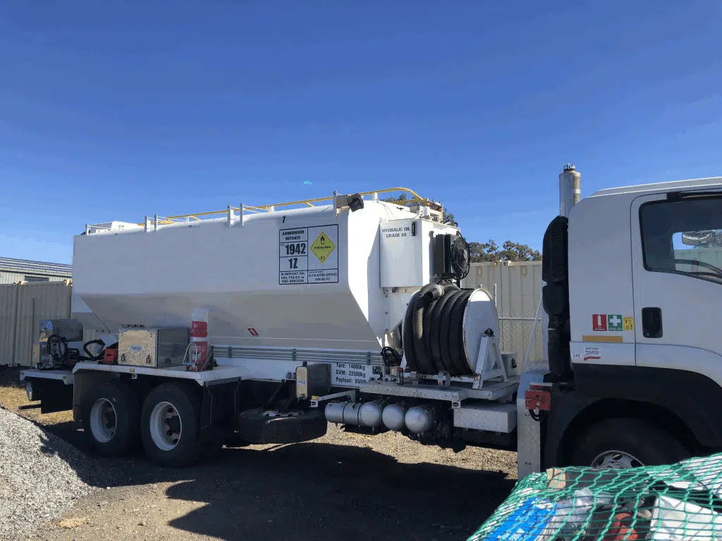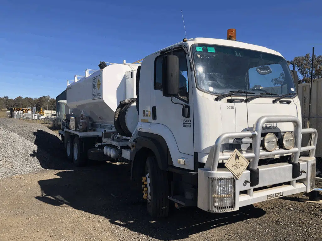 IEE built (2010 serial number 13601) Queensland registered anfo /blower truck has been recently refurbished and is mounted on a 2009 Isuzu FX truck with low kilometres.