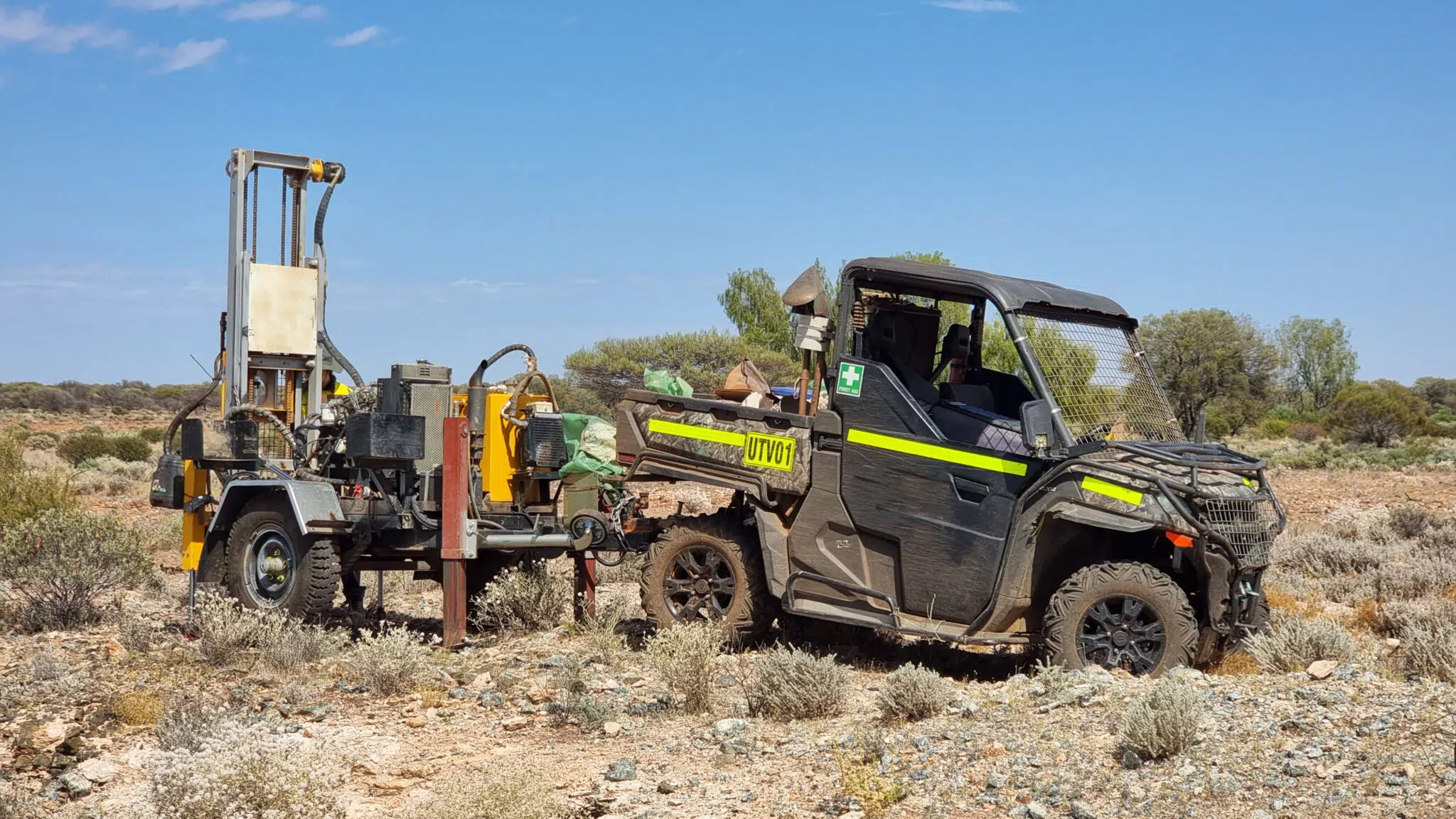Great setup for soil sampling and soil testing purposes. Trailer mounted auger rig manufactured by 101 Sampling Solutions is fitted with a 25hp diesel Perkins motor. The drill has been modified from the original design for heli-lifting (now breaks into 3 units for lifting). The rig is 100% operational and ready to drill. Please note UTV is not included in the purchase price.